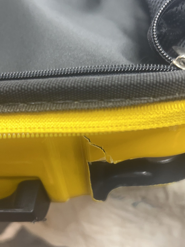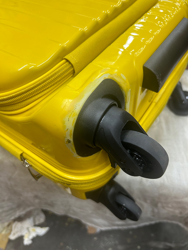 スーツケース破損修理のご依頼 2024年8月29日 修理実例 キャスターの取り付け付近が破損。修復修理をしました。内部からグラスファイバーで補強しパテで仕上げました。修理費用は6,000円(塗装は無し)でした。 修理後