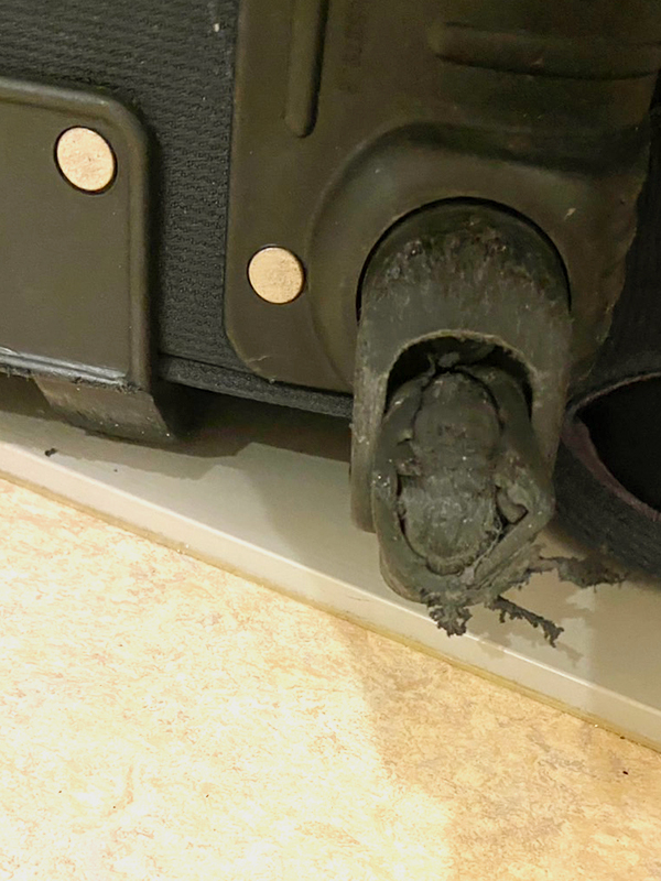 スーツケースのキャスターが破損したので、交換修理をしたいとご依頼がありました。出張して新品に交換しました。1箇所交換で、修理費用は3,000円でした。名古屋市在…